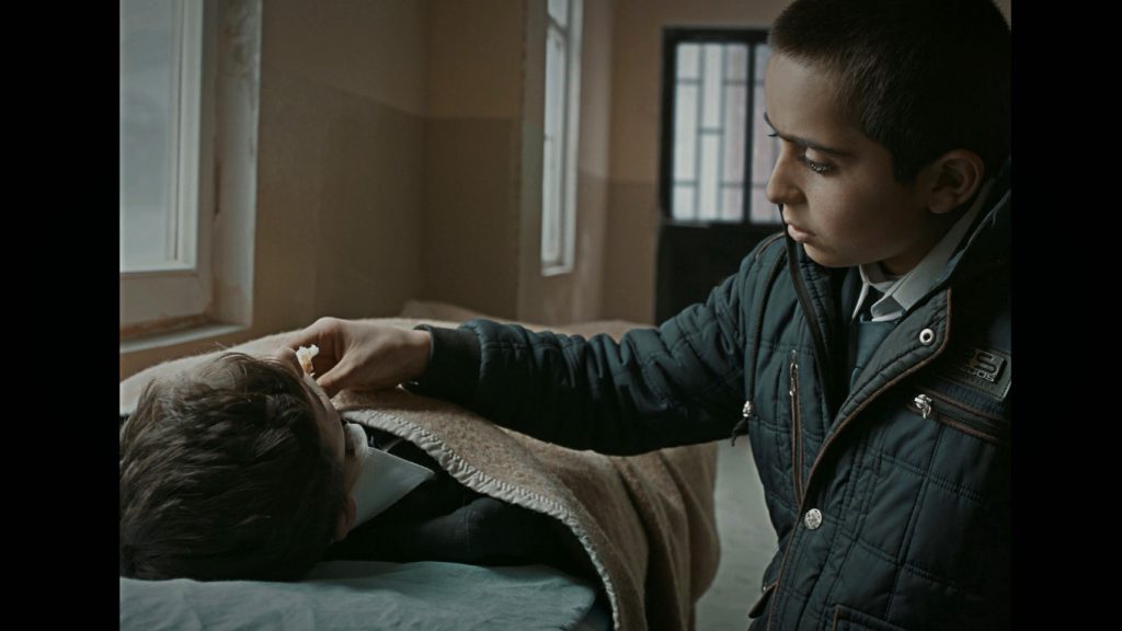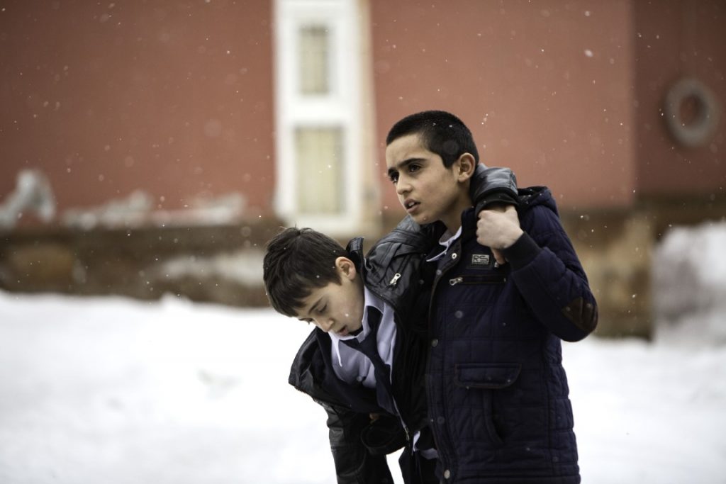 Filme mekan bakarken aynı zamanda oyuncu seçmeleri de yapıyorduk. 2-3 ayımı aldı sanırım. Sonrasında bir yerde mekan bakarken Samet ile yollarımız kesişti. Samet, zihnimdeki karaktere çok uyuyordu. Sonrasında mekânda çekim izni alamadık ve başka bir ilde çekim yapmamız gerekti; fakat ben Samet’i oynatmakta kararlıydım. Yapımcım Kanat Doğramacı da çok beğenmişti. İki arkadaşımızı Yusuf’un ailesine gönderdik ve ikna etmeyi başardık. Aslında esas sorun bir veya iki çocuk yerine bazen sayıları 450-500’e varan çocuklarla çalışmak. Çok hareketliler ve onları kontrol altında tutmak çok zor. Filmde belki daha az görünüyor fakat bu hacim olarak az yer kapladıkları içindir. Hatta kalabalık bir sahnede diğer öğrenciler nerede, neden bu kadar az olduklarını sorduğumda, herkesin orada olduğunu söylediler. Fakat bütün çocuklara büyüklere davrandığım gibi ciddi ve mesafeli davranıyordum. Bu durum onların da işi ciddiye almalarına sebebiyet verdi sanırım. Çünkü çocuklar da karakter sahibiler ve fikirlerinin önemsendiğini, görünür olduklarını bildikleri vakit söylenen her şeyi anlayıp sana fazlasıyla geri verebiliyorlar. Disiplini asla elden bırakmaya, ipin ucunu kaçırmamaya dikkat ettim. Diziler ve kahramanlık filmleri sıradan insanların üstünde sandığımdan daha fazla etki bıraktığını fark ettiğim an, ilk haftamı bu anlayışı kırmaya çalışmakla geçirdim. Sahici karakterler yaratmak çok zor oldu bu filmde çünkü aslında hepsi belli bir noktadan sonra birbirlerine benzeme tehlikesi taşıyordu. O yüzden senaryoda önce herkes için karakter analizi yapmıştık. Bu bizim işimizi çok kolaylaştırdı. Sizin de gördüğünüz gibi kar, hem biçim hem de muhtevanın en büyük parçalarından biri. O yüzden programımızı oyuncuya göre değil, kar yağışına göre yapacağımı söyleyip yanımda kalmalarını rica etmiştim. Olabildiğince yanımda kaldılar.