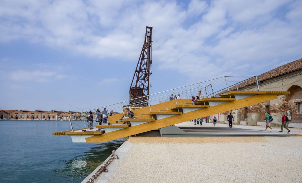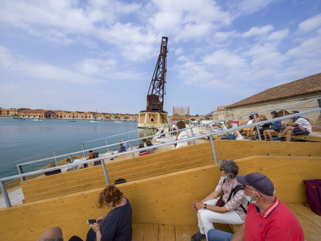 Suyun üzerine doğru uzanan basamaklar, Arsenale’yi gezenlerin bildiği üzere, limanın en uç noktasına gelindiği ve oldukça yorulunan bir noktada, insanlara oturma, bekleme, dinlenme olanağı sunuyor. Yapı suyun üzerinde hem ileri doğru hem de farklı bir kotta konumlandığından, insanlar her zamankinden farklı bir açıdan su ile temas ediyor. Bekleme saatleri uzayabiliyor, sohbetler ve buluşmalar burada gerçekleşebiliyor. Böylece su, yaşamımızın bir kesitine sızabiliyor. Göz ardı edemeyeceğimiz bir canlı varlık olarak ayaklarımızın altında, bakışımızın ilerisinde yer alıyor. Bir iskelede veya teknede hissettiğimiz gibi, ama ondan da oldukça farklı bir deneyim bu.