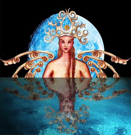 Örneğin Türk mitolojisinde yaratıcılık ile özdeşleşen, Deniz Tanrıçası Ag Ene (Ak Ana) toprakta değil suda yaşar. Ak Ana, asıl yaratıcı olarak kabul edilmiştir. Yeri, göğü ve insanları yaratan tanrı Ülgen'e yaratma gücünü veren de odur. O, hayatın başlangıcına dair ne varsa hepsine ruh vererek yaşam döngüsünü başlatmıştır.