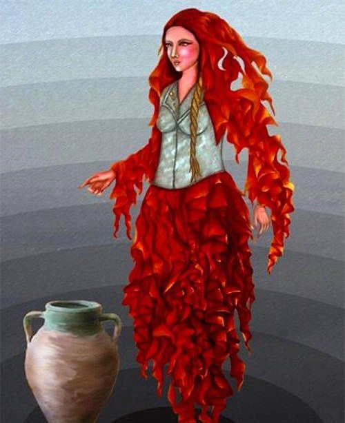 ‘Sen karanlık gecelerde, genç kızlar gibi saçlarını dalgalandırarak oynuyorsun. Kırmızı ipekli kumaşlar sallayarak, genç al kısrak üzerinde geziniyorsun.’