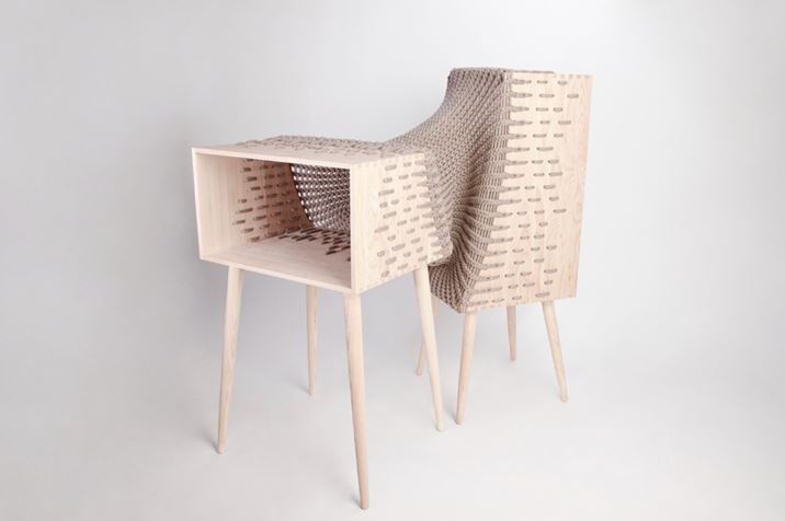 Macar tasarımcı Kata Monus, deneysel olarak hibrit mobilya tasarladı. Bu tasarımda örgü ve ahşap malzeme bir arada kullanılıyor.