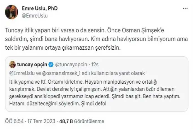 Bunların üzerine bir paylaşım daha yapan Opçin, "Bugün attığım tweetlerde Mehmet Değerli’nin komşusu ile Değerli'ye mektup yazdıran kişiyi sehven karıştırdım. Bunun için özür dilerim. Diğer attığım tweetlerde bilgi problemi yoktur. Yanlış anlaşılmaya sebep olmak istemem" diye yazdı.