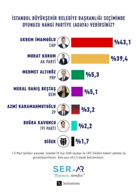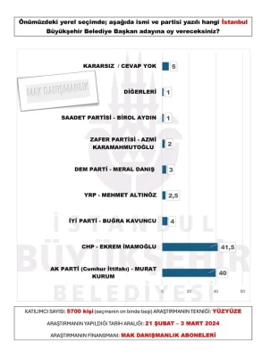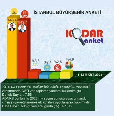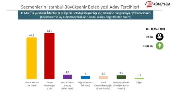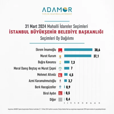 Gezici seçim anketine göre, seçim yasakları nedeniyle sonuçlardaki isimler kapatılsa da Murat Kurum'un kazandığı ifade edildi.