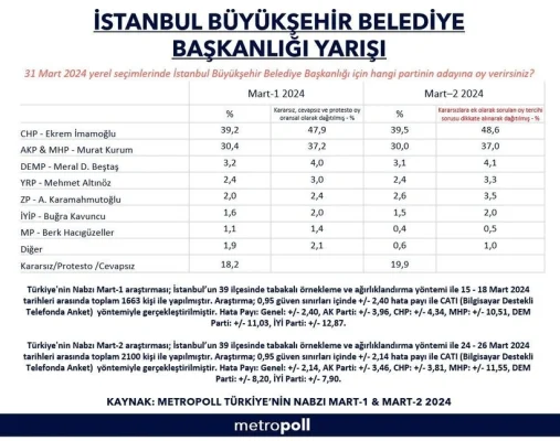 31 Mart yerel seçimleri için İstanbul'da yapılan anketlerin sonuçlarını derledik. İşte İstanbul'daki adayların anket şirketlerine göre aldığı oy oranı...