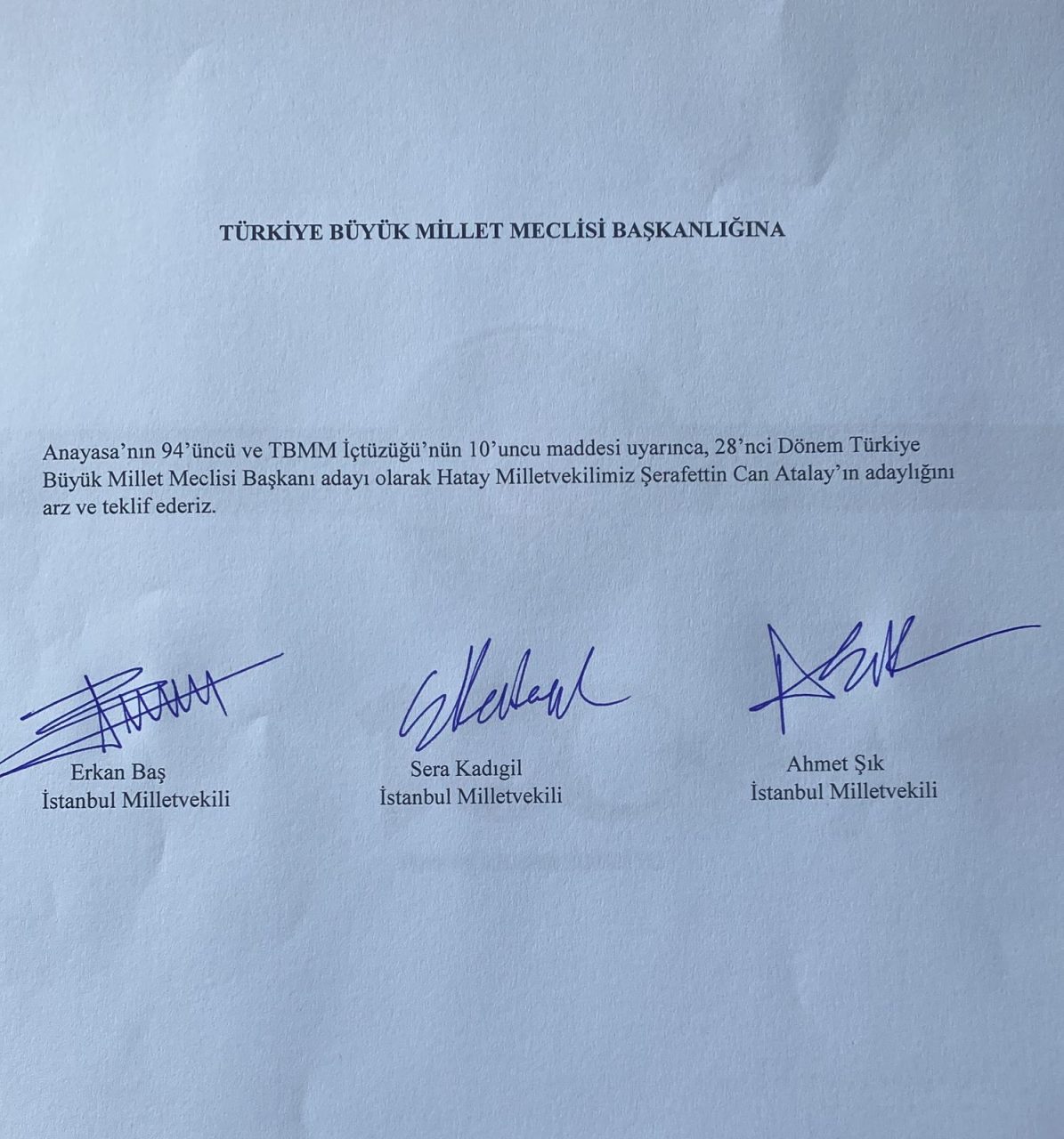 TİP Genel Başkanı Erkan Baş, kendisinin, TİP Sözcüsü Sera Kadıgil’in ve İstanbul Milletvekili Ahmet Şık’ın imzasının yer aldığı dilekçeyi TBMM Genel Sekreteri Mehmet Ali Kumbuzoğlu’na bugün saat 15.00’te teslim etti.