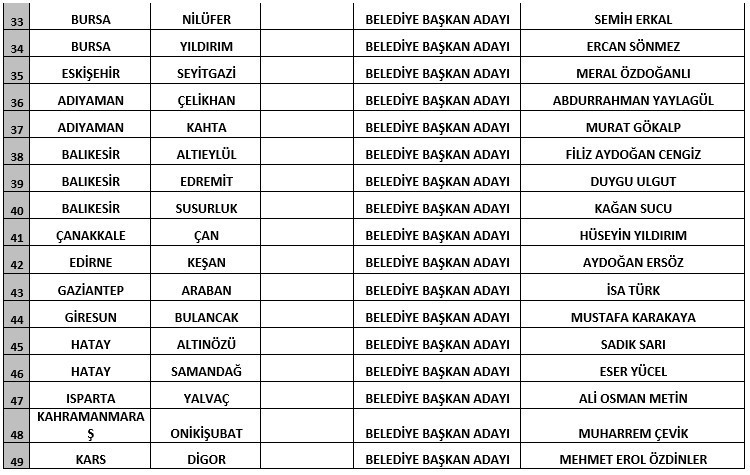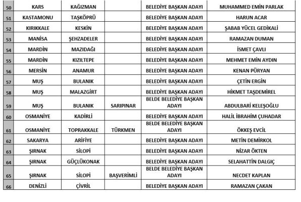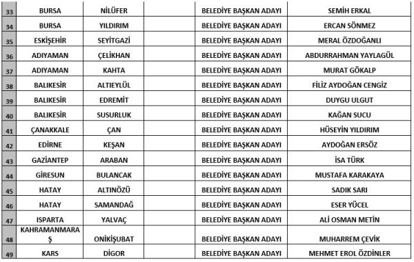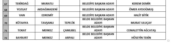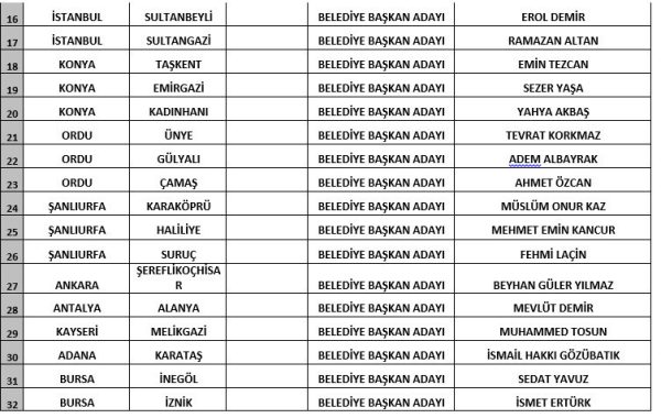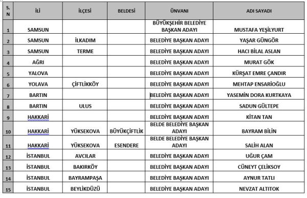 9 askerin hayatını kaybettiği saldırı nedeniyle lansman yapmayan Gelecek Partisi'nin kamuoyuna duyurduğu adayların tam listesi şöyle: