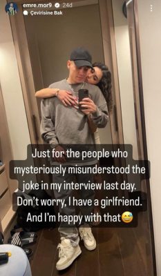 Karagümrük'te forma giyen Emre Mor'un verdiği röportajda kullandığı ifade gündem olmuştu. Milli futbolcu sosyal medyada ingilizce bir paylaşım yaptı:"Yaptığım röportajdaki espriyi yanlış anlayanlar için; Merak etmeyin, bir...