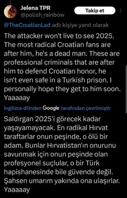 Hırvat mafyasına ait olduğu hesaplardan ise Livakovic’e yumruk atan taraftara yönelik paylaşım yapıldı. Sosyal medya paylaşımında saldırganın 2025’i göremeyeceği iddia edildi.