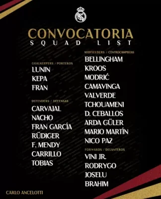 Real Madrid, Suudi Arabistan'ın başkenti Riyad'da Atletico Madrid ile oynanacak olan İspanya Süper Kupası yarı final mücadelesinin kamp kadrosunu açıkladı. Milli futbolcumuz Arda Güler, Süper Kupa maçının kadrosuna dahil edildi.