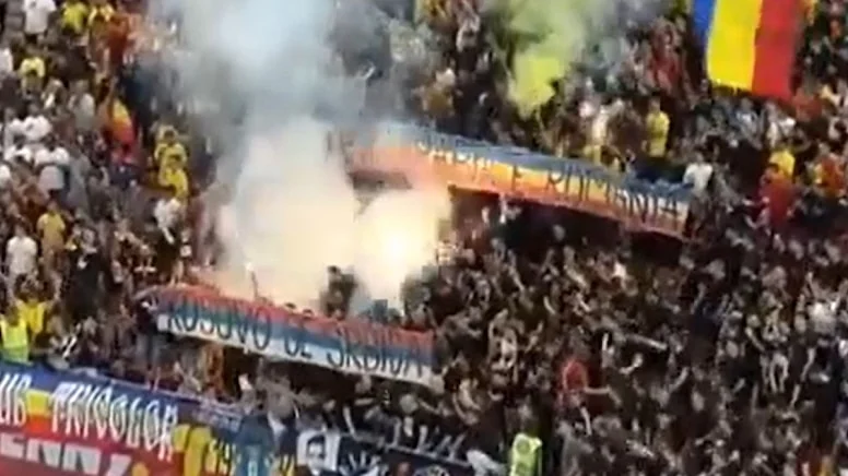 Romanya-Kosova maçında ev sahibi takımın taraftarları kale arkasında, "Kosova Sırbistan'dır" pankartını açınca konuk takım oyuncuları maçı bırakıp soyunma odasına gitti. Maç yaklaşık 50 dakika durdu.EURO 2024 Elemeleri...