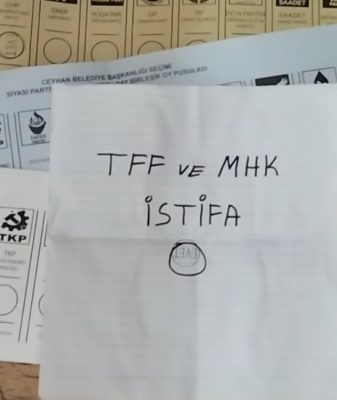 30 Mart 2024 yerel seçimlerinde futbol taraftarı mesajlarını sandıkta gösteriyor. Bir taraftar yerel seçimde "TFF ve MHK istifa" kağıdı getirerek 'evet' mührünü üzerine bastı ve sosyal medyada paylaştı.