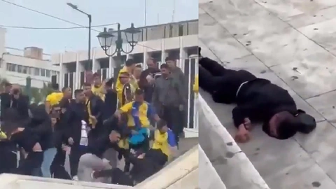 Atina'da oynanan Olympiacos- Maccabi Tel Aviv maçında İsrail ekibi 1-0 yenik duruma düşmesine rağmen sahadan 4-2 galip ayrılmayı başardı. Maçtan önce İsrailli taraftarın arasında kalan ve "Özgür Filsitin" diye bağıran bir Yunan taraftar feci şekilde dayak yedi. Yunan taraftarın sağlık durumunun ciddi olduğu belirtildi.