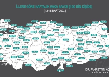 İllere göre haftalık vakada Eskişehir ilk sırada