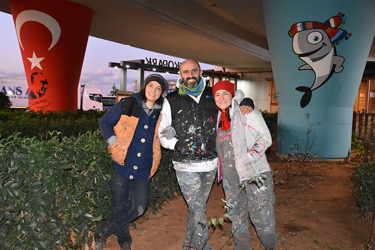 Trabzonlu Yıldıray Yıldırım, Zuhal Kurt Sadıklar ve Sevgi Birinci Özdemir, farklı noktalarda duvarlara yaptıkları resimlerle kenti güzelleştiriyor.