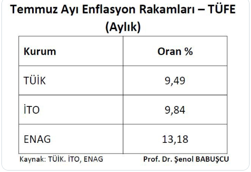 Tüik ve ENAG arasındaki fark dikkati çekti. Ziraat Bankası eski Genel Müdür Yardımcısı Prof. Dr. Şenol Babuşcu sosyal medyadan paylaştığı tabloyla "sizce hangisi" diye sordu.
