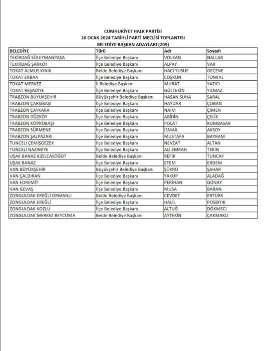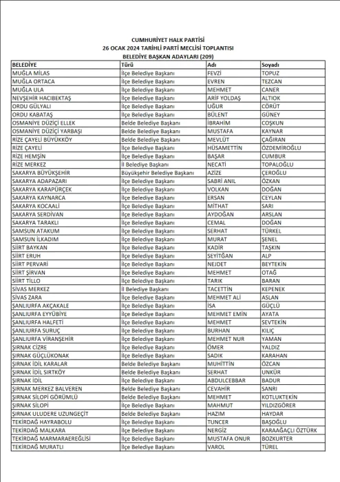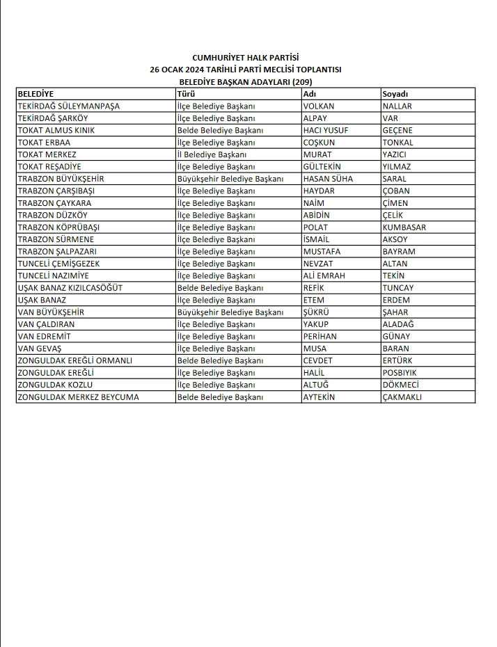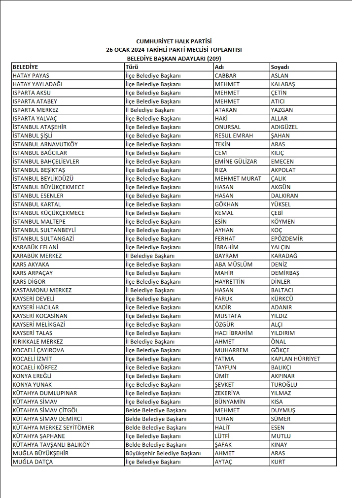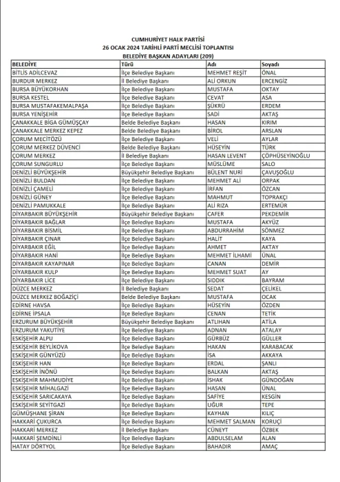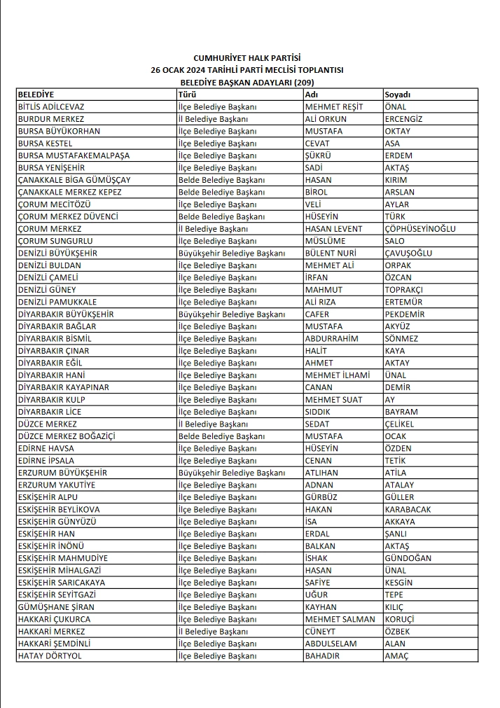 CHP'de 209 belediye başkan adayı daha belli oldu