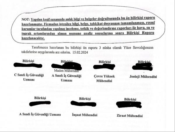 İliç'teki maden faciasına ilişkin Erzincan Cumhuriyet Başsavcılığı tarafından hazırlatılan Bilirkişi Ön Raporu ortaya çıktı. Raporda siyasi sorumlulara yer verilmedi.
