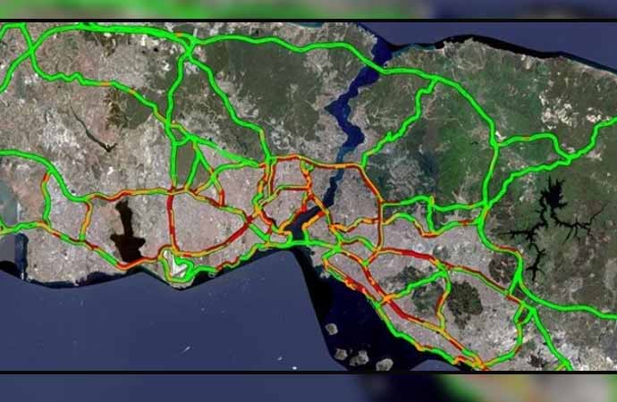 İstanbul’da akşam saatlerinde trafik kilitlendi. İBB trafik yoğunluk haritası verilerine göre, saat 19.30 itibarıyla şehirde trafik yoğunluğu yüzde 80 seviyelerine ulaştı.