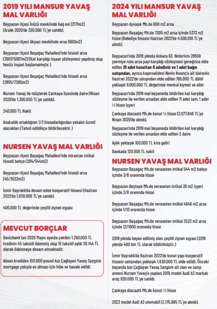 Yavaş, son olarak kendi adını taşıyan resmi sitesinde mal varlığını açıkladı.