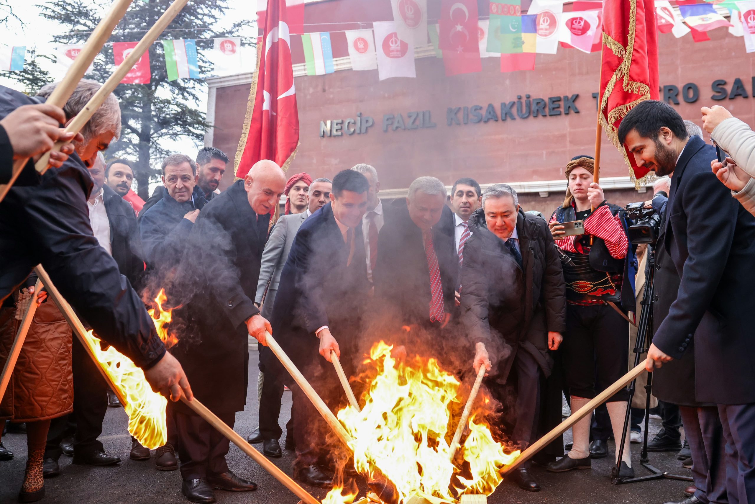 Turgut Altınok daha sonrasında örs üzerinde demir dövdü, yakılan nevruz ateşi üzerinden atladı.