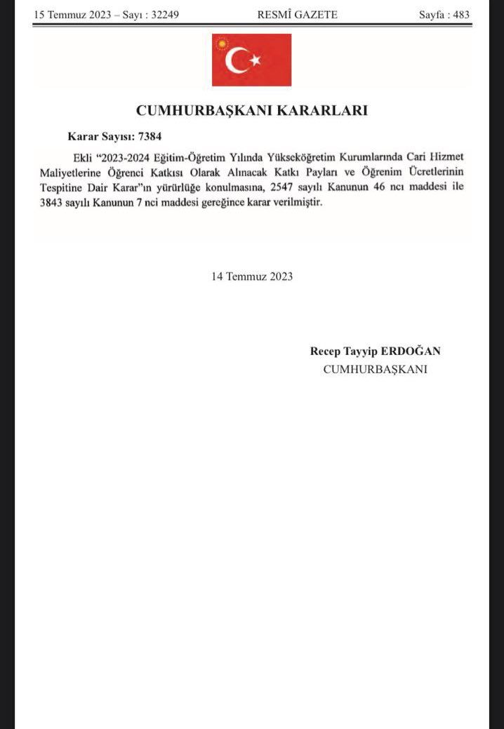 Resmi Gazete'de yayımlanan son kararla birinci öğretim öğrencileri üniversite harçları ödemek zorunda kalacak.