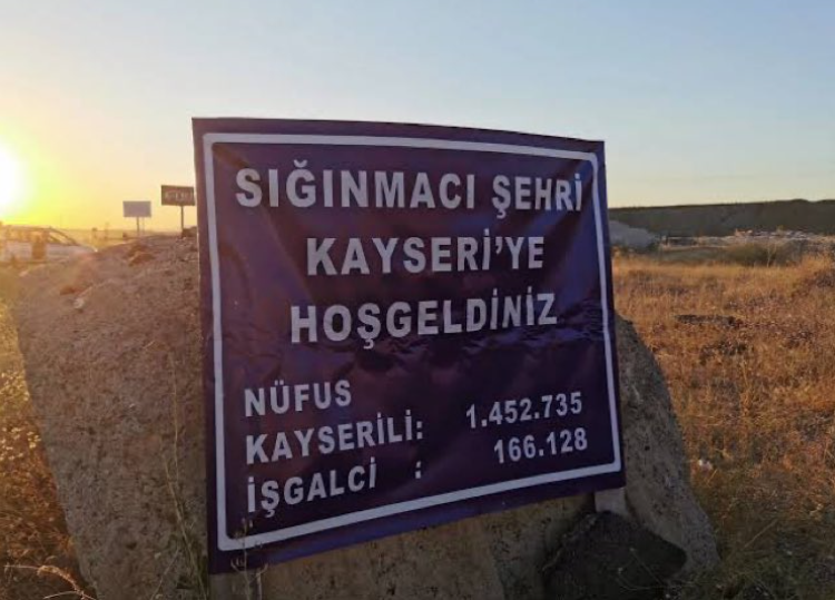 Kayseri'nin girişine kimliği belirsiz kişilerce "Sığınmacı şehri Kayseri'ye hoş geldiniz" yazılı pankart asıldı.