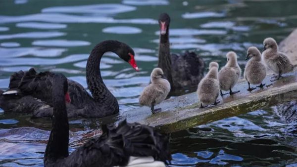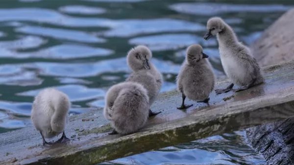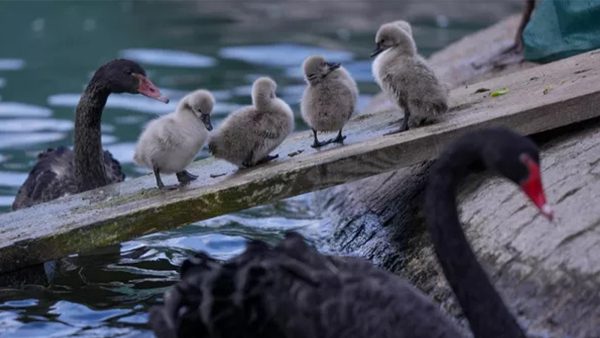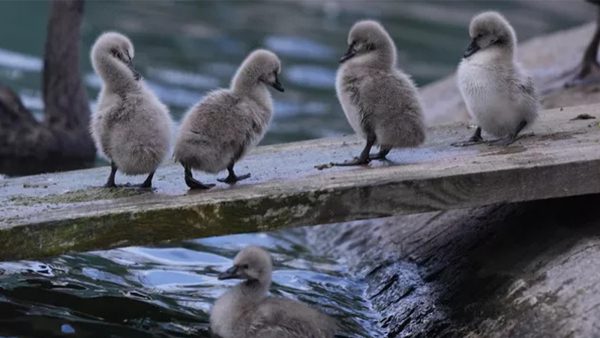 Kuğulu Park'ta dünyaya gelen 5 siyah kuğu yavrusu ilgi odağı oldu
