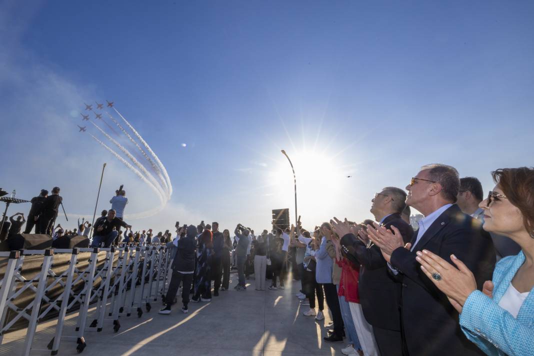 Kent protokolüyle birlikte gösteriyi izleyen Mersin Büyükşehir Belediye Başkanı Vahap Seçer, vatandaşların yoğun ilgisiyle karşılandı. Göklerde sergilenen estetik manevralar, hem çocukları hem de yetişkinleri büyüledi.