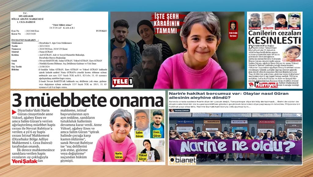 Çok değil, daha beş ay öncesine kadar, gazetelerin, haber siteleri ve televizyonların en çok üzerinde durdukları konulardan biriydi Narin Güran cinayeti. Sadece gazeteciler değil, gündüz kuşağı programlarında konuşanlar bile dedektif kesilmişti.