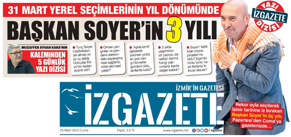 Muzaffer Ayhan Kara, gazeteci ama aynı zamanda İzmir Büyükşehir Belediyesi’nin şirketlerinden İzdeniz’in Yönetim Kurulu üyesi. İz adlı yerel gazetede İzmir Büyükşehir Belediye Başkanı Tunç Soyer’in üç yılını anlatan bir yazı dizisi hazırladı.