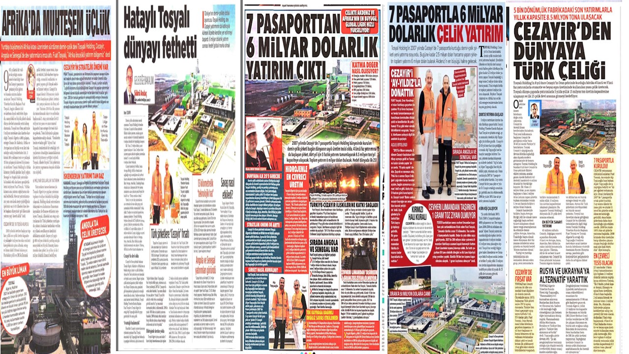 Tosyalı Holding’in Cezayir’deki demir çelik fabrikasına övgüler düzülen haberler aynı gün beş gazete ve internet sitesinin ekonomi sayfalarını kaplamıştı.
