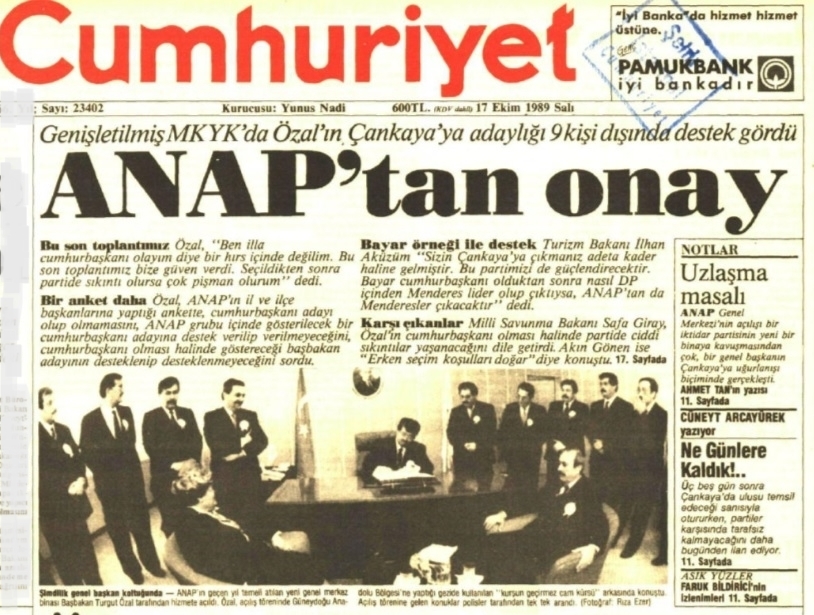 Halbuki Turgut Özal, o binanın 16 Ekim 1989’da yapılan açılış töreninde partisine veda etmişti; bir gün sonra da Meclis Grup toplantısında Cumhurbaşkanı adaylığını açıklamıştı. Açılış günü girdiği makam odasına belki bir iki kez daha uğramıştır. Çünkü adaylığını açıkladıktan bir hafta sonra da TBMM’de oylamalar başlamıştı.