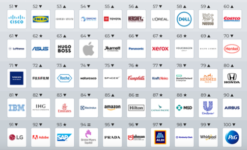 Genelde son tüketici ürünleri satmayan, bu nedenle listede olmasına şaşırdığım, teknoloji markaları da var. CISCO, IBM ve SAP gibi.