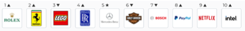 Liste uzayıp gidiyor. İlginç olan ilk beşte teknoloji markalarının olmaması. İlk onda ise 8. sırada PayPal, 9. sırada Netflix, 10. sırada Intel var. Teknoloji markaları arasında iyi giden, yükselen, dikkat çekenler: