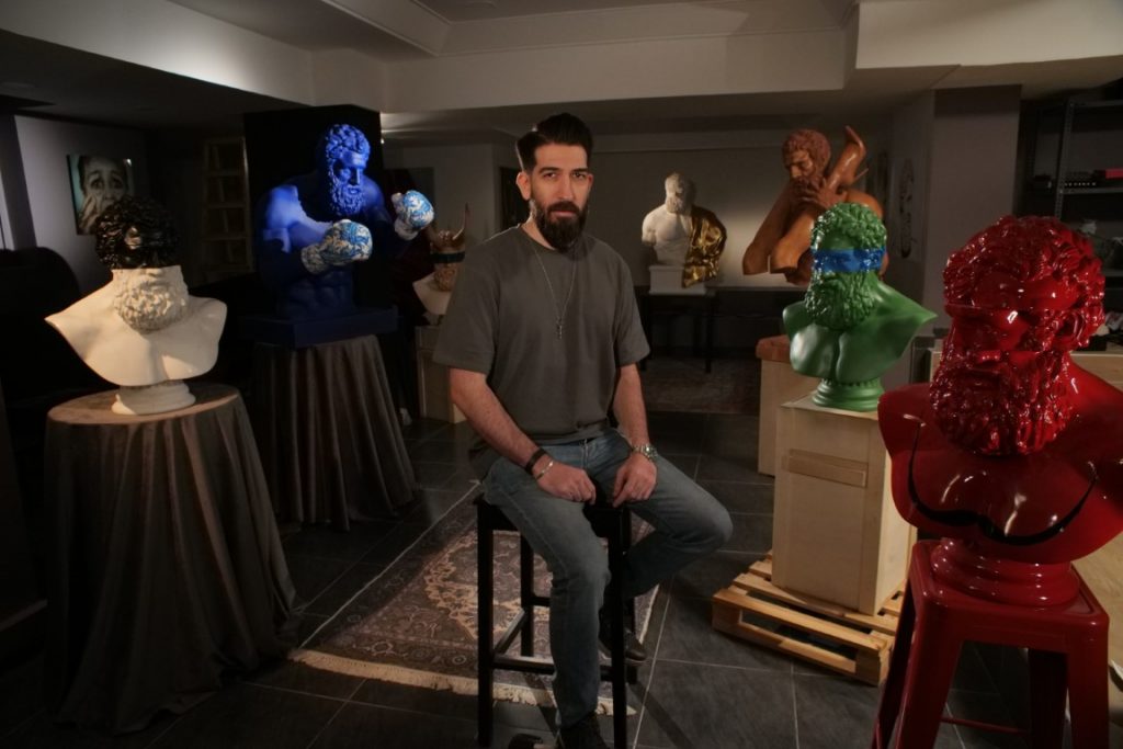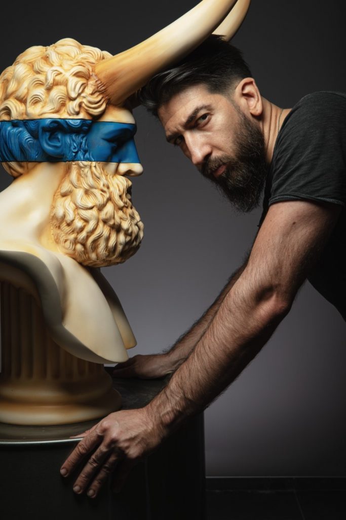 Benim işlerimde bir imzam var ve o imza kontrastların armonisi. Kontrast olaylardan besleniyorum ve müthiş keyif alıyorum. Siyahın karşısına beyazı, parlağın karşısına matı, hızlının karşısına yavaşı koymak, statik dinamik yani mitolojinin yanına modern kafa bende hep böyle çalışıyor. Kontrast işlerden bir tanesi Herkül’ün hikayesi şöyle; bir gün motor kullanıyordum ki motor dinamik bir şey motorun üstünde statik bir şey ne olur diye düşündüm ve heykelden daha statik bir şey yok. Motor kullanan bir heykel ne kadar güzel kontrast bir görüntü olur aslında olmayacak iki şey. Heykel motosiklet kullansa çok hoş olur diyerek öyle başladım çizmeye fakat gördüm ki bu çizerek olacak gibi değil başka teknikler kullandım. O heykelin tanınması gerekiyor diye düşünürken oradan da Herkül’e ulaştım. Neden Herkül? Bu motosiklet çok dünyevi bir şey ve bu dünyaya ait. Bu dünyaya ait şeylerin içinde bir heykel konumlanacaksa bu dünyaya karşı bir güdüsü olan, bu dünyadan olmak isteyen tanrı olmalı o yüzden de yarı tanrılar içinden Herkül’ü seçtim. Gücün insanoğlu tarafından bir yumuşak karın olduğunu düşünüyorum hem fiziksel gücün hem gücün tanrısı olma konusunda. İnsan olmak isteyen gücün tanrısı motosiklet kullanmalı dedim ve kurgu bu şekilde ilerledi.