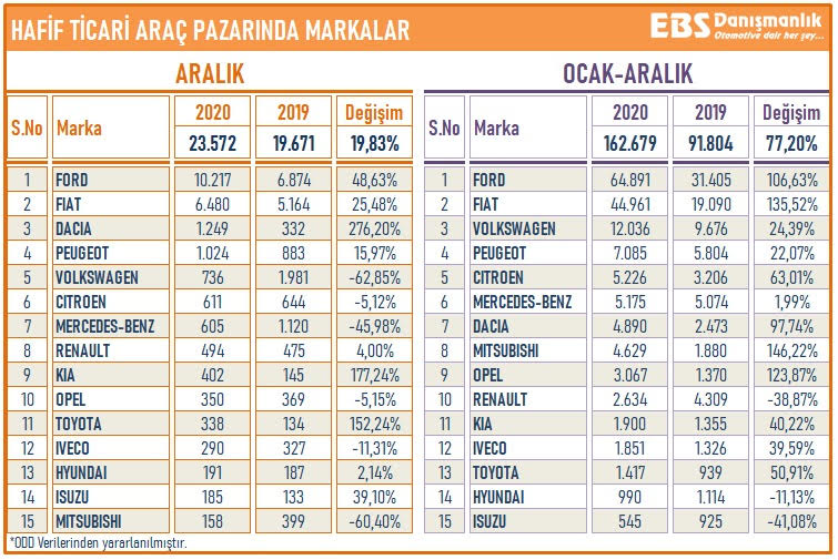 En Çok Satılan Hafif Ticari Araç Markası: FORD