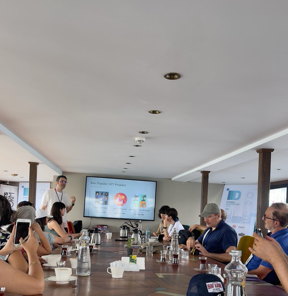 Bu üç isim, illüstrasyon gibi çok geniş kapsama alanına sahip bir konuda, ambalaj tasarımından sinema ve dizi sektörüne, minyatürlerden kentin duvarlarındaki murallere, kent eskizlerinden karikatüre, grafik tasarımdan NFT ve Metaverse ‘e kadar pek çok farklı temada konuşmaları bir araya getirdiler.