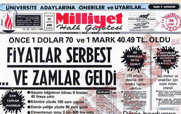 - 24 Ocak kararları ile 47,1 TL olan kur 70 TL’ye devalüe edilmiştir.