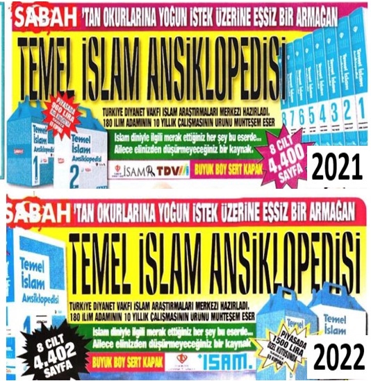 • Bu yıl Ramazan nedeniyle okurlarına kuponla “Temel İslam Ansiklopedisi” veren Sabah gazetesi geçen yıl da aynı ansiklopediyi dağıtmıştı.