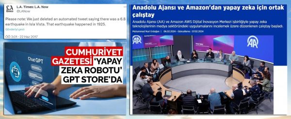 Nitekim Cumhuriyet, Türkiye’de kendi “yapay zeka robotu”, GPT Store’da yer alan ilk medya kuruluşu oldu. Anadolu Ajansı da “Medyada yapay zeka etik kullanım rehberi” hazırladı. Bir de yapay zekanın uyumu ve gazetecilik uygulamalarında geliştirilmesi amacıyla “Teknoloji ve İnovasyon Direktörlüğü” kurdu.